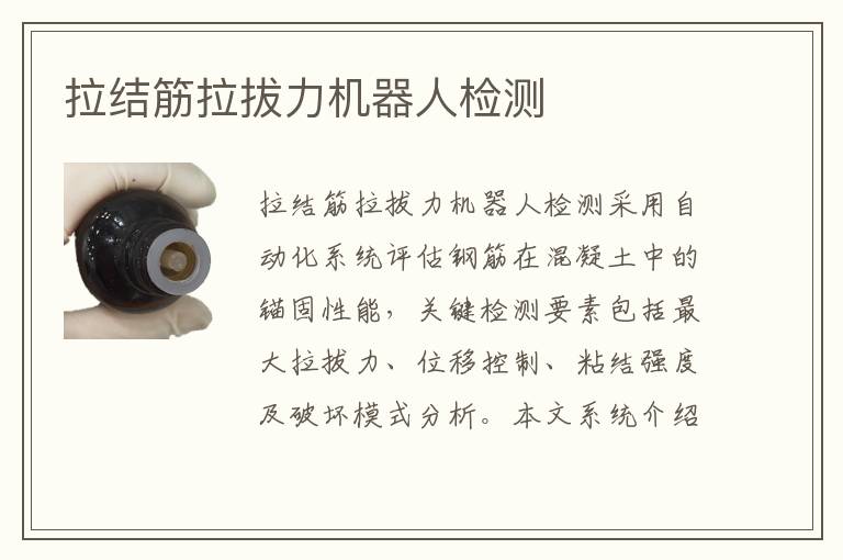 關鍵詞:拉結筋拉拔力機器人測試儀器,拉結筋拉拔力機器人測試周期,拉結筋拉拔力機器人項目報價